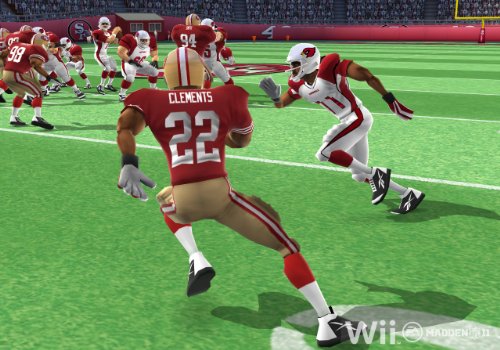 Point and Pass I am a big fan of the point and pass system, and actually enjoy playing the Wii version a lot. I think Madden lost a lot when they converted the PS2 version to the PS3, but the Wii version has been simplified the most of the 3 platforms IMO. The simple approach of pointing the Wiimote at the receiver you'd like to throw to is genius. Running is also fun because in order to get a big run, you have to shake the wiimote fast (while holding A) in order to get a power move. If you aren't fast enough or your timing is off you get a big whiff message. Defense is also more enjoyable to the casual player, because if you are inexperienced with football video games, you're looking to get that big hit message across the screen which shows your defensive player rocking the opponent. ...